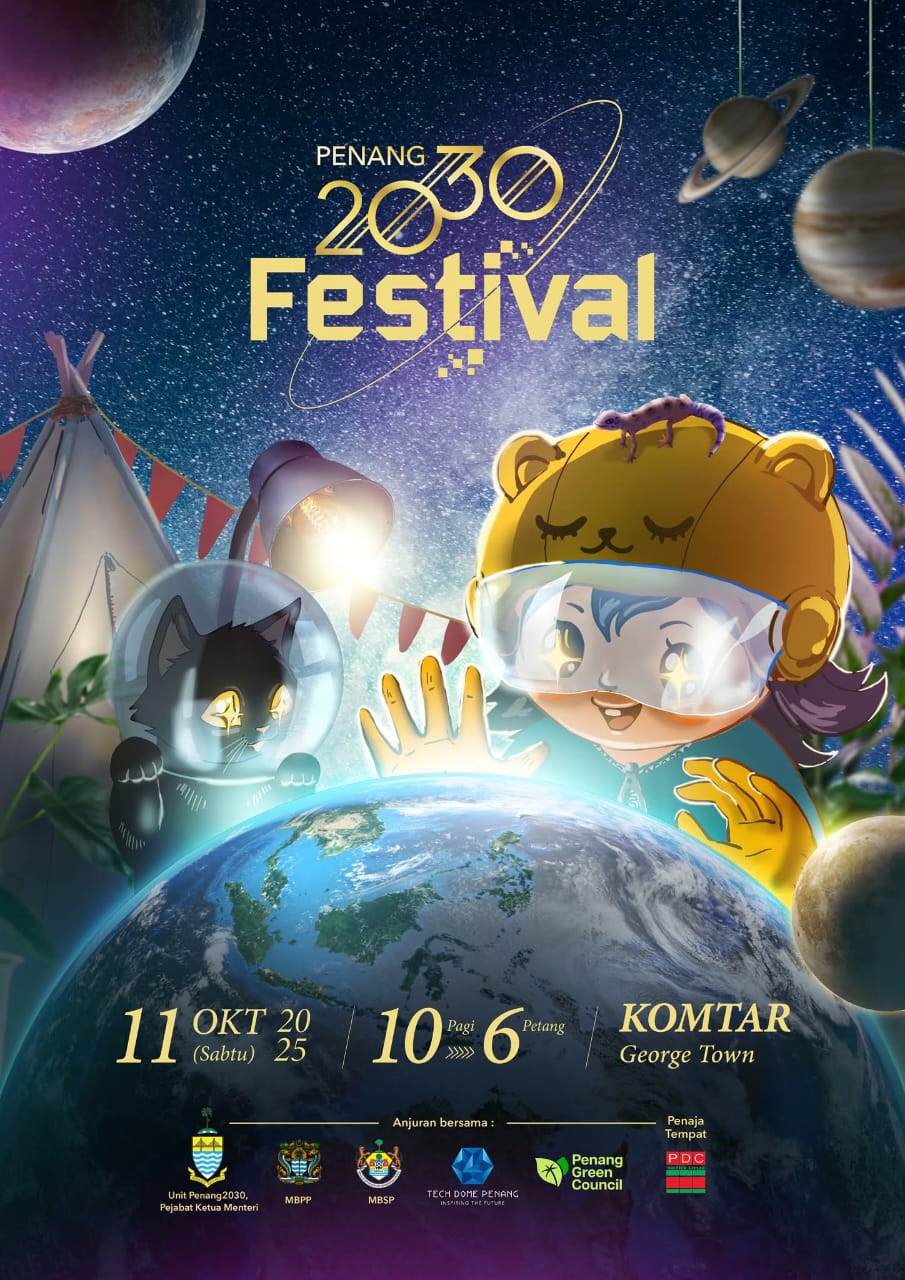 Dengan penuh sukacita, kami mempersembahkan poster rasmi PENANG2030 FESTIVAL KOMTAR 2025! 🎊 📅 Tarikh: 11 Oktober 2025 (Sabtu) 🕙 Masa: 10.00 pagi - 6.00 petang 📍 Lokasi: Aras 3 & Aras 4, KOMTAR